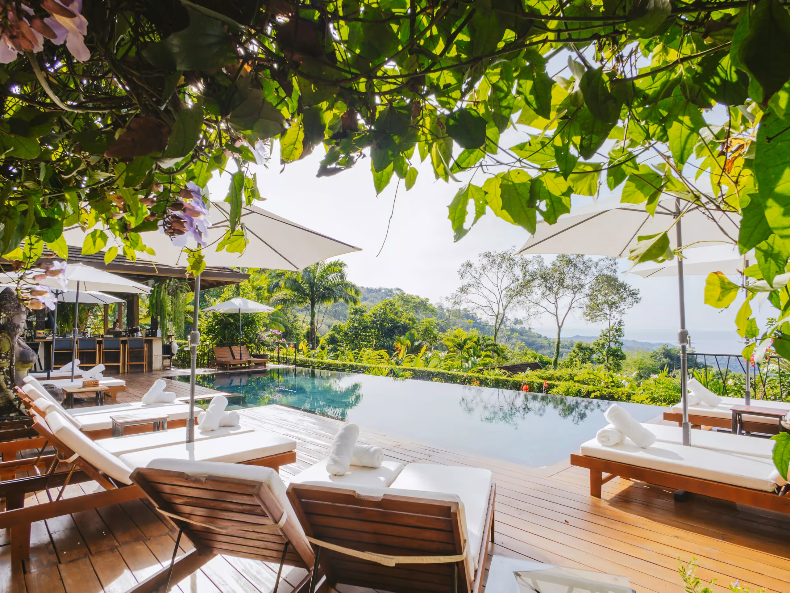Tucked into the rainforest above Uvita, Oxygen Jungle Villas & Spa is an adults-only boutique retreat with 12 Balinese-style glass villas offering sweeping jungle and ocean views. Guests relax by an infinity pool overlooking the Pacific, enjoy fine meals at the on-site restaurant and explore private trails that lead to tropical waterfalls, all enhanced by wildlife encounters and serene spa experiences.